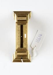 Keywords: Rikningsinstrument av förgylld mässing, 1648 - Skoklosters slott - 92839.tif LSH artwork Laurentius Mayer styckgjutare sv Bestående av en fot en graderad ståndare en sextant en pendel urspr två och en camera obscura periskop Sign Laurentius Mayer Stuckhaubtman fecit 1648 Foten är 103 mm bred och har en 21 mm hög triangulär urtagning på undersidan <br/>På fotens ovansida bakre delen är 45 mm lång skala 4 -0- 4 motsvarande den i sidled förskjutningsbara basen på ståndaren Ståndarna består av två delar Ram av två parallella ben förenade av tvärslåar upptill och nedtill Högra benet graderat nerifrån och upp 2-7 tum vänstra benet graderat 8-13 tum Mellan benen går en i höjdled skjutbar ograderad skena på ovansidan en tvärställd list På denna list två vertikala runda plattor mellan vilka placeras på liknande enkel platta på camera obscuran Plattan fästes samman med en skruv med blomholksliknande huvud och mutter Två dubbla plattor fastskruvade vid skenans nedre kant ger möjlighet till en alternativ placering av camera obscuran Sextanten är fastskruvad vid ståndarens högra ben Radie 143 mm Cirkelsektorn graderad från vänster till höger 5-45<br/> ojämna avstånd samt 5-50 jämna avstånd Vid sextantens centrum är fästat ett gjutet huvud från vilken hänger ståltråd till en före detta pendel Mellan sextantens radier är placerat ett kerubhuvud som främre stöd för pendeln En bevarad pendel 75 mm lång av ståltråd med ett gjutet janushuvud av mässing som lod Pendeln hänger genombruten volut upptill på ståndarens vänstra ben Nedtill på samma ben bildar en liknande volut en konsol till en platta med knopp för inställning av pendeln Camera obscura är en liten ask 45x33x27 mm med tak och botten av mörkt träslag och väggar av mässing Itaket och i högra väggen ett rektangulärt hål Inuti asken en snedställd spegel Under aske fastskruvat en 125 mm lång mässingspinne med uppåtböjd spets sikte Under pinnen genombrutna gjutna ornament med griphuvud och rullverk På askens vänstra sida fastskruvat ett beslag med ett gjutet lejon och en rund platta för fästande vid ståndaren original caption Rikningsinstrument av förgylld mässing 1648 <br/> Nyckelord Vetenskap Teknik Föremålsbild 1648 size mm 285 223 SKO Carl Gustaf Wrangel place of origin original filename sm_dig5500 28622 inventory number SKO 10616 92839 CC-BY-SA Fredrik Andersson <gallery caption Different images of same object > File Riktningsinstrument av förgylld mässing 1648 - Skoklosters slott - 92856 tif </gallery> Scientific instruments Fredrik Andersson Media contributed by LSH unmatched creator Media contributed by LSH 2014-11 |