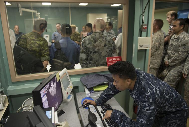 | Keywords: RIMPAC 2014 Military Medicine 140703-N-VY375-014.jpg en Hospital Corpsman 1st Class Brando Aquino performs a simulated computed tomography CT scan for a tour group of international military medical personnel aboard the Military Sealift Command hospital ship USNS Mercy T-AH 19 during Rim of the Pacific RIMPAC Exercise 2014 Twenty-two nations more than 40 ships and submarines more than 200 aircraft and 25 000 personnel are participating in RIMPAC exercise from June 26 to Aug 1 in and around the Hawaiian Islands The world ™s largest international maritime exercise RIMPAC provides a unique training opportunity that helps participants foster and sustain the cooperative relationships that are critical to ensuring the safety of sea lanes and security on the world ™s oceans RIMPAC 2014 is the 24th exercise in the series that began in 1971 U S Navy photo by Mass Communication Specialist 3rd Class Pyoung K Yi/Released 2014-07-03 Seaman Pyoung Yi https //www dvidshub net/image/1434808 140703-N-VY375-014 2014-07-04 17 16 JOINT BASE PEARL HARBOR-HICKAM HI US PD-USGov-Military-Navy People at Joint Base Pearl Harbor-Hickam USNS Mercy T-AH-19 RIMPAC 2014 Images from DoD uploaded by Fæ |