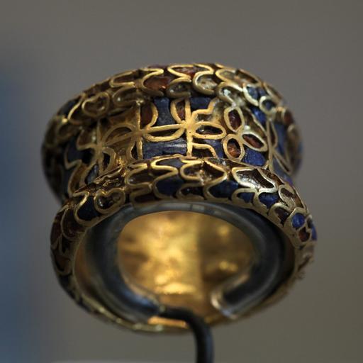 | Keywords: Ring-AO277-IMG 6794.jpg artist object type Ring LangSwitch Ring with wide brims made of lapis lazuli decorated with golden floral and scale patterns Bague à larges bords faire de lapis-lazuli rehaussé de motifs floraux et motifs d'écailles en or ca 2500 BC Gold cornelian lapis lazuli cm 9 7 80 Institution Louvre room ID 101 object department near eastern antiquities 11425 object history credit line ProvenanceEvent discovery 1903 Cros Tello Girsu accession number AO 177 Rama own artwork license PD-old-100 photo license CeCILL Cc-by-sa-2 0-fr Photograph by Rama Wikimedia Commons Cc-by-sa-2 0-fr <small>More information on how to use my images</small> other versions Near Eastern Antiquities in the Louvre - Room 1a Jewellery in the Louvre |