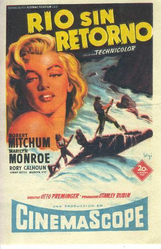 Keywords: carteles programas de mano programasdemano cine fox soligo clasico western marilyn 20th century fox 20thcenturyfox american movies americanmovies classic monroe preminger text poster book 1954. River of No Return 1954. River of No Return