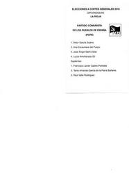 Keywords: Rioja pcpe generales 2016.jpg es Papeleta electoral de Partido Comunista de los Pueblos de España PCPE para el Congreso - Elecciones Generales de España de 2016 circunscripción de La Rioja 2016-08-05 own B25es other versions cc-zero PD-SpanishGov <br/> De minimis The party logo Ballot papers for the 2016 general election for La Rioja Spain Ballot papers for Partido Comunista de los Pueblos de España Uploaded via Campaign bpsge |