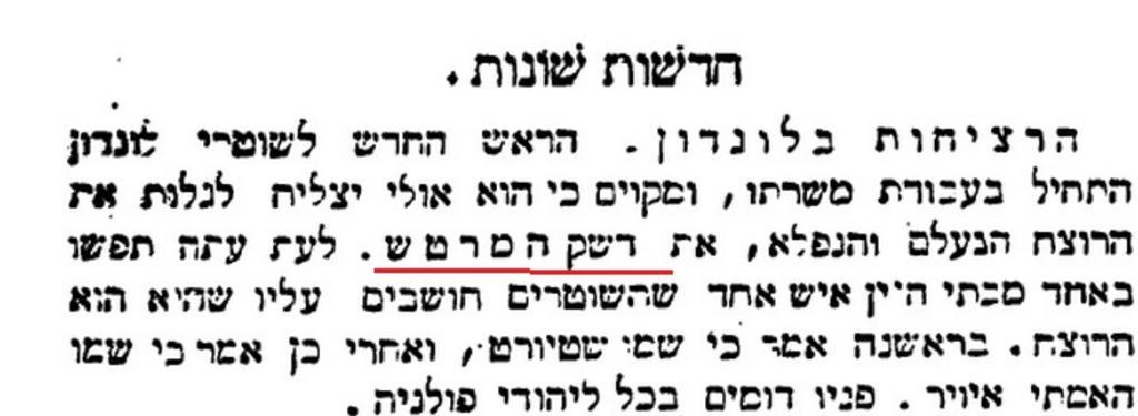 Keywords: RipperHebrew.jpg new police chief in London will be able to track the mysterious killer 'Jack the Ripper' Jeck haMeratesh 1888-12-21 w HaZvi 21 December 1888 p 6 http //www jpress nli org il/olive/apa/nli_heb/SharedView Article aspx href HZV 2F1888 2F12 2F21 id Ar00604 sk 8B1AC74E direct link Eliezer Ben-Yehuda א יעזר בן-יהודה 1858-1922 other versions PD-old-1923 1922 Uploaded with UploadWizard Jack the Ripper 1888 in HaYishuv Ha-Zvi |