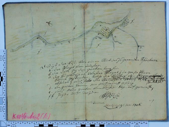 | Keywords: Riss des Schierbaum 9088.jpg Die Bilder enstanden anläßlich eines Workshops im Rahmen von Skillshare 2010 in Zusammenarbeit mit dem Stadtarchiv Lüneburg Die Originale wurden freundlicherweise vom Stadtarchiv zur Verfügung gestellt <br /> Transkript der Bildbeschreibung <blockquote> Diß ist der Riß von einem Stück des so genandten Schierborn<br /> a der Spiegel vom Waßer<br /> b der Dam bey dem Graben lang hier<br /> c der Zugewachsene Waßer Spiegel da große Ellern Bäume gestanden welche der Schuster von abhauen und jetz die Stämme /Einfügung durch da dorff welchen er solchen graf zu sche hat/ aus ten laßen <br /> d Ein Garten Zaun von Miltendorff gehörig <br /> e sind neue Graben von von st zu agen aufgeworffen <br /> f f Jegde und Weide <br /> W Häßler<br /> Lüneburg d 29ten Jan 1746 <br /> </blockquote> Registratur K10 H2 k own 2010-06-09 user Joergens mi 53 2459671 10 4084140 PD-old Skillshare 2010 Stadtarchiv Stadtarchiv Lüneburg De Wikisource book leaflet Joergens mi Manuscripts Lüneburg in the 1740s 1746 documents Taken with Pentax K20D Jömi 201010 |