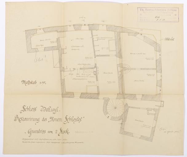 Keywords: Ritning på schloss Hallwyl - Hallwylska museet - 102191.tif LSH artwork sv Slottet Hallwil <br/>Entwurf zur Restaurierung des neuen Schlosses <br/>Th Bertschingers Söhne Januar 1913 <br/>Hvitkopior 65 5 x 55 7 cm Skala 1 50 <br/>Zeichnung Nr 250 Parterre-Grundriss <br/> >> 251 Grundriss vom 1 Stock <br/> >> 252 Grundriss vom 2 Stock <br/> >> 253 Dachstock-Grundriss <br/> >> 254 Längenschnitt <br/> >> 255 Ansicht von Süden <br/> >> 256 Ostfacade <br/> >> 257 Ansicht von Norden <br/> >> 258 Hofansicht von Westen original caption Ritning på slottet Hallwyl <br/> Nyckelord Hallwyl Föremålsbild 1913 paper cardboard HWY place of origin original filename hm_dig11200 113296 inventory number HWY LXIV IV I e d 03 102191 PD Jenny Bergensten <gallery caption Different images of same object > File Schloss Hallwyl bottenvåningen - Hallwylska museet - 102187 tif File Ritning på Schloss Hallwyl första våningen - Hallwylska museet - 102188 tif File Ritning schloss Hallwyl - Hallwylska museet - 102195 tif File Ritning över Schloss Hallwyl - Hallwylska museet - 102192 tif File Ritning på Schloss Hallwyl - Hallwylska museet - 102193 tif </gallery> Schloss Hallwyl Architectural drawings of Hallwyl House Archives Jenny Bergensten Media contributed by LSH 2015-11 |