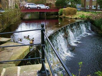 Keywords: River Colne at Marsden.JPG en Weir on River Colne at Marsden 2012-03-31 own Poliphilo cc-zero Uploaded with UploadWizard Marsden West Yorkshire River Colne West Yorkshire