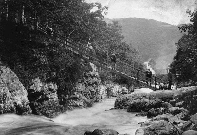 Keywords: j.f. cooke jfcooke photography river outdoors nature ontario canada history landscape bridges stairs recreation hiking trails hobbies blackandwhite monochrome outdoor waterfall water black and white Date: c. 1900 Description: Small gorge with bridge crossing from one bank to the other on a steep incline with a few people crossing. Photo by J.F. Cooke. Accession No.: 983.86.89 A Date: c. 1900 Description: Small gorge with bridge crossing from one bank to the other on a steep incline with a few people crossing. Photo by J.F. Cooke. Accession No.: 983.86.89 A |