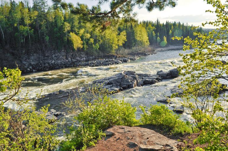 Keywords: river flowing landscape strong powerful taiga wild