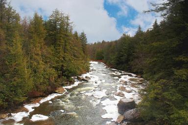 Keywords: river pine trees forest nature landscape mountain outdoor
