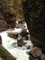 Keywords: river racing current rock stones gorge valley allgäu wall hiking