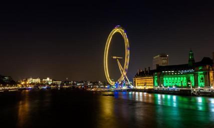 Keywords: river thames london eye england landmark famous cityscape architecture wheel tourist skyline night long exposure city travel evening building reflections