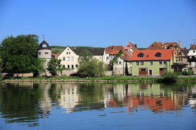 Keywords: river water mirroring homes row of houses cityscape city view