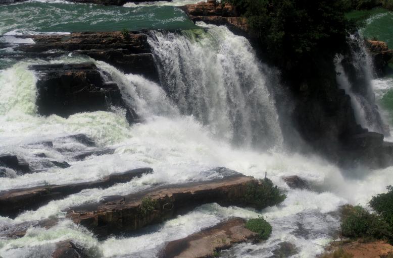 Keywords: river water waterfalls running falling rushing turquoise white rocks