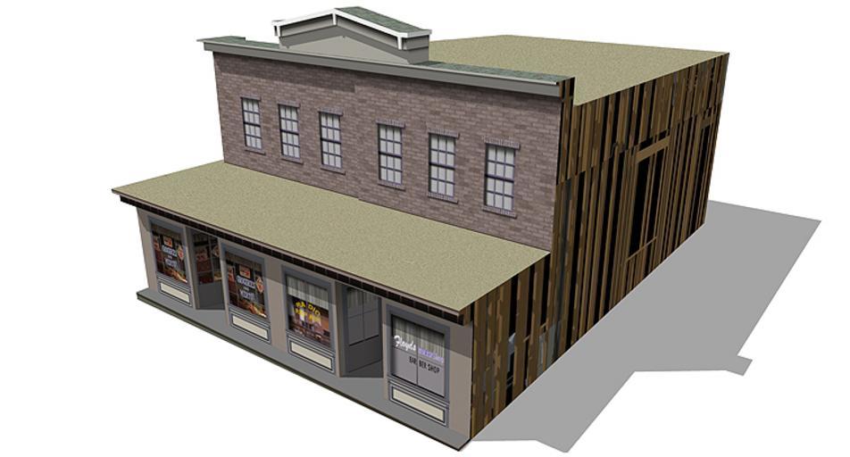 Keywords: RKO backlot - Floyds barbershop.jpg 2D image exported from a 3D model of a building that once existed until 1976 on the now demolished RKO Studios backlot called Forty Acres The building was used as a film set and appeared on the popular television series The Andy Griffith Show as the location for Floyds a fictitious barbershop that apperared routinely throughout the series ™ run The building also appeared on Star Trek in a 1967 episode entitled The City on the Edge of Forever in front of which characters Captain James T Kirk William Shatner and Edith Keeler Joan Collins walked hand in hand by the radio repair shop and grocer In the same scene was Floyds barbershop which was to the right of the music repair shop self made designed in Google Sketchup 6 0 2008-02 Bill Wrigley Film sets RKO Studios Architectural drawings by SketchUp Star Trek The Original Series