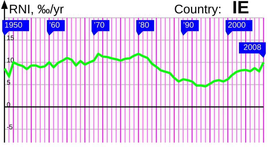 Keywords: RNI 1950 IE.svg en The w Rate of natural increase in Ireland - Éire 1950 “2008 own Incnis Mrsi 2009-07-13 public domain Image BirthDeath 1950 IE svg This graph visualize the difference between a birth ratehttp //demoscope ru/weekly/ias/ias05 php tim 0 cou 12 terr 1 ind 26 Submit OK and a death ratehttp //demoscope ru/weekly/ias/ias05 php tim 0 cou 12 terr 1 ind 1 Submit OK and nothing more All disclaimers from Image BirthDeath 1950 IE svg apply also to this image Temporal population graphs of Ireland Rates of natural increase |