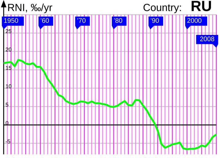 | Keywords: RNI 1950 RU.svg en The w Rate of natural increase in Russia 1950 “2008 own Incnis Mrsi 2009-07-13 public domain Image BirthDeath 1950 RU svg This graph visualize the difference between a birth ratehttp //demoscope ru/weekly/ias/ias05 php tim 0 cou 26 terr 1 ind 26 Submit OK and a death ratehttp //demoscope ru/weekly/ias/ias05 php tim 0 cou 26 terr 1 ind 1 Submit OK and nothing more All disclaimers from Image BirthDeath 1950 RU svg apply also to this image Demographics of Russia Rates of natural increase |