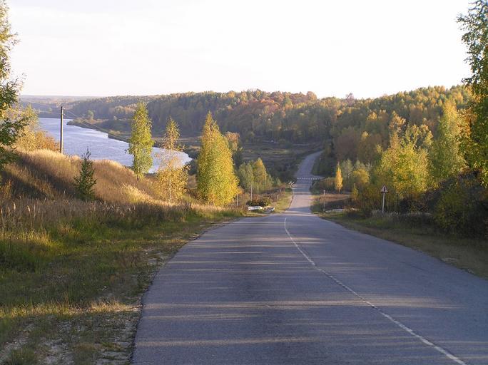 Keywords: road autumn river forest