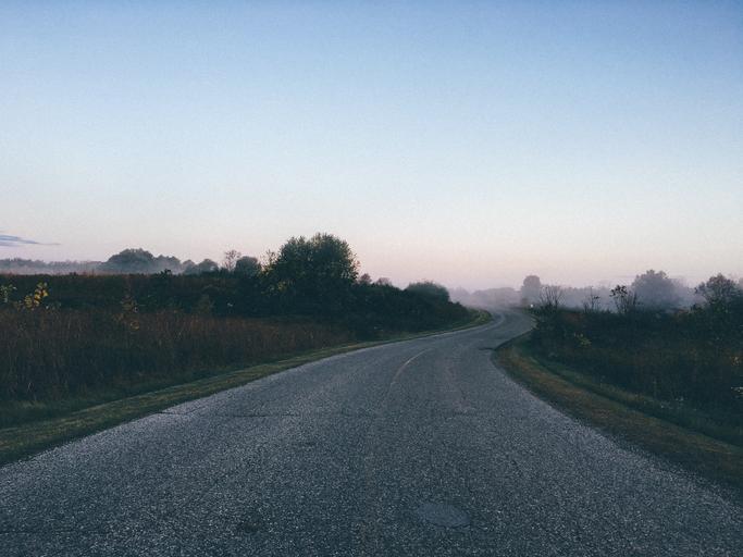 Keywords: road landscape street asphalt traffic surface trip journey nature travel outdoor morning fog mist vegetation scene countryside infrastructure