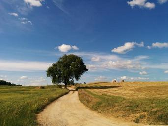 Keywords: road landscape tree cloud sky
