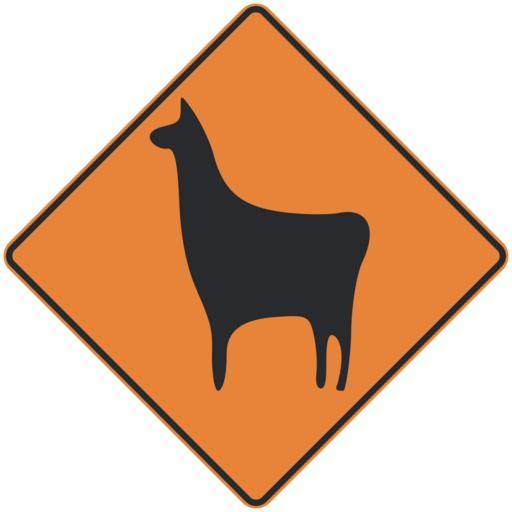 Keywords: Road sign llama.svg Señal de tránsito LLamas 2006-08-26 own assumed Huhsunqu Origen Huhsunqu SVG road signs Black and orange signs Mammal-related warning road signs