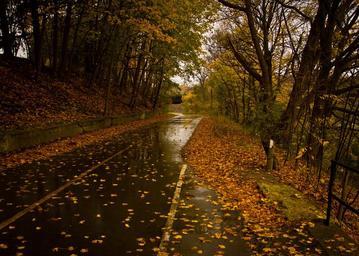 Keywords: road wet rain leaves autumn fall trees nature rural