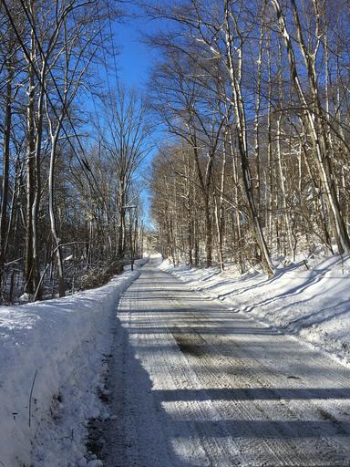 Keywords: road winter snow sky trees forest scene nature seasons solitude travel ice blue branches cold driving landscape rural white country slippery icy traveling day
