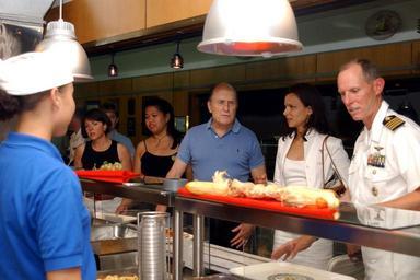 Keywords: Robert Duvall Navy.jpg 030614-N-3122S-003 Naval Air Station Sigonella Sicily Jun 14 2003 - Actor/Writer/Director Robert Duvall Actress Luciana Pedraza and Capt Tim Davison Naval Air Station Sigonella Commanding Officer greet Mess Management Specialist Seaman Apprentice Lisa Foster as they cue in line at the NAS II Galley at NAS Sigonella Mr Duvall and Ms Pedraza stopped by NAS Sigonella to meet with Sailors and family members after appearing at the Taormina Film Fest in Sicily where their film Assassination Tango was playing The pair ate at the base galley visited the Black Stallions of Helicopter Combat Support Squadron HC-4 and the Tigers of Patrol Squadron Eight VP-8 and signed autographs in the base commissary NAS Sigonella provides logistical support for Commander U S Sixth Fleet and NATO forces in the Mediterranean Sea U S Navy photo by Photographer ™s Mate Airman Shannon R Smith RELEASED from http //www navy mil/view_image asp id 11865 PD-USGov-Military-Navy Robert Duvall Luciana Pedraza Taormina Film Fest |