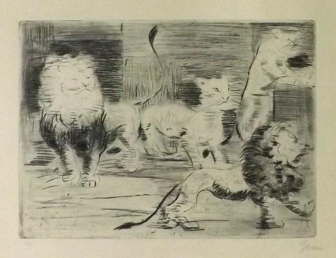 | Keywords: Robert Genin - Löwen.jpg Artwork Creator Robert Genin 1919 <sup>1</sup> etching Size cm 29 5 22 5 object history exhibition history credit line place of creation inscription Genin caption bottom right Numbered 21/35 https //www liveauctioneers com/item/44956230_robert-genin-1884-1943 LiveAuctioneers Lot 294 https //p2 liveauctioneers com/1980/87676/44956230_1_x jpg direct link accession number PD-old-auto-1923 1941 Robert Genin Lions in art Etchings of animals | ||||