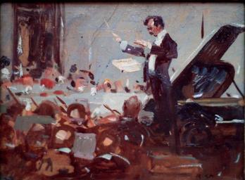 Keywords: Robert Sterl Kussewitzky.jpg Artwork Creator Robert Sterl Kussewitzky dirigiert 1910 Oil on canvas cm 23 31 Institution Museum der bildenden Künste selbst fotografiert uploaded there by user de User Robert01 on 24 Mar 2011 Other versions PD-old-auto 1932 Robert Sterl Serge Koussevitzky Paintings in the Museum der bildenden Künste Conductors in art Pianos in art 1910 paintings |