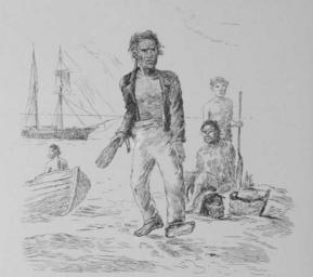 Keywords: Robley Moko1.jpg en Sketch by H G Robley of Maoris bargaining about mokomokai Originally published 1896 Robley H G 1896 Moko; or Maori Tattooing New Zealand Electronic Text Centre 1896 PD-Art History of New Zealand Tattoos in Polynesia Shrunken heads Drawings of people Trading Drawings of ships Men with face tattoos Tattoos in Polynesia Mokomokai |