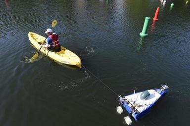 Keywords: RoboBoat 150710-N-PO203-002.jpg en 150710-N-PO203-002 VIRGINIA BEACH Virginia July 10 2015 Navy Reserve Chief Electronics Technician Phillip Edwards tows an autonomous surface vehicle back to land during a July 10 practice run for the 2015 AUVSI Foundation and Office of Naval Research-sponsored International RoboBoat competition in Virginia Beach Va The vessel dubbed NCKU by its team from the National Cheng Kung University located in Tainan Taiwan is one of 16 boats competing this year Teams traveled from as far as Indonesia and South Korea for the challenge U S Navy photo by John F Williams/Released 2015-07-10 Master Chief Petty Officer John Williams https //www dvidshub net/image/2055578 150710-N-PO203-002 2015-07-11 06 03 VIRGINIA BEACH VA US PD-USGov-Military-Navy Office of Naval Research Images from DoD uploaded by Fæ |