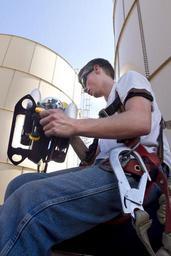 | Keywords: Robotic inspection of water tanks DVIDS337679.jpg en Field Tech Noah Peyer of Tank Industry Consultants unpacks and inspects a remote operated vehicle beside a 200 000 gallon fresh water tank Nov 3 on Camp Lemonnier The ROV has a video camera that sends a signal back to a DVD recorder monitor and control unit to visually inspect the quality and condition of the water holding tank The inspection is being conducted to insure the quality of the water held with in the tank remains at a high quality and the vessel is physically sound 2010-11-03 U S Navy photo by Chief Petty Officer Robert P Gallagher https //www dvidshub net/image/337679 101103-N-+++++-007 2010-11-08 10 37 DJIBOUTI DJ PD-USGov-Military-Navy Camp Lemonnier Images from DoD uploaded by Fæ |