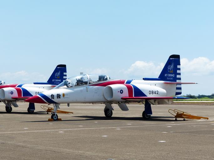 Keywords: ROCAF Thundertigers AT-3 0842 at Tainan Air Force Base 20130810.JPG zh-tw 飛行表演結 後, 放空軍臺南基 機 的雷虎小組AT-3 0842 2013-08-10 13 31 59 Own 玄史生 other versions 0842 aircraft ROCAF Thundertigers AT-3 in 2013 2013 Tainan Air Force Base Open Day 玄史生写 文庫 Taken with Leica V-Lux 4 Uploaded with UploadWizard cc-zero |
