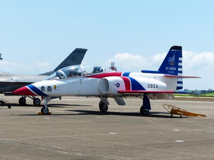 Keywords: ROCAF Thundertigers AT-3 0824 at Tainan Air Force Base 20130810.JPG zh-tw 飛行表演結 後, 放空軍臺南基 機 的雷虎小組AT-3 0824 2013-08-10 13 33 10 Own 玄史生 other versions 0824 aircraft ROCAF Thundertigers AT-3 in 2013 2013 Tainan Air Force Base Open Day 玄史生写 文庫 Taken with Leica V-Lux 4 Uploaded with UploadWizard cc-zero |