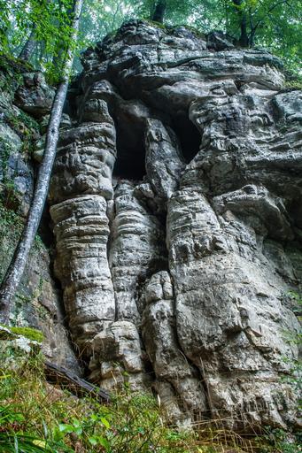 Keywords: rock cliff rock wall grey cold blue face skull mysterious threatening mystical eyes steep cave input uncertain slope