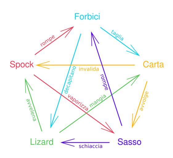 Keywords: Rock Paper Scissors Lizard Spock it.svg The Big Bang Theory Traduzione di w File Rock paper scissors lizard spock png es Un diagrama en italiano de la resolución del juego «Piedra papel tijera lagarto Spock » Rock Paper Scissors Lizard Spock en svg 2010-06-20 16 29 UTC Rock Paper Scissors Lizard Spock en svg VidTheKid derivative work Garau anto 150px RetouchedPicture Rock Paper Scissors Lizard Spock en svg original upload log This image is a derivative work of the following images File Rock Paper Scissors Lizard Spock en svg licensed with PD-self 2009-04-18T06 02 46Z AnonMoos 400x365 40459 Bytes <nowiki>trimming margins vector data remains the same </nowiki> 2009-04-18T03 53 13Z VidTheKid 400x400 40433 Bytes <nowiki> en A diagram indicating which gestures beat which other gestures and by what action in a game of Rock-paper-scissors-lizard-Spock Made to replace derivativeFX The Big Bang Theory-related graphics Rock Paper Scissors Lizard Spock Legend in Italian |