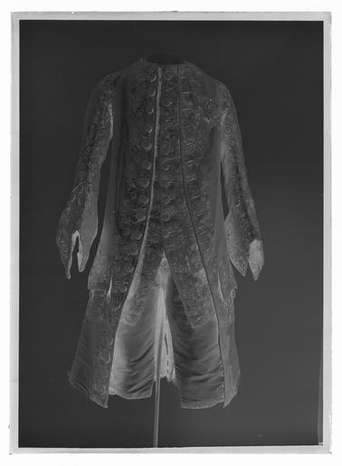 Keywords: Rock till Gustav IIIs bilägersdräkt - Livrustkammaren - 17849-negative.tif LSH artwork Le Sage Livskräddare Léger Trémeau hovbrodör Christopher Sergell brodör sv Använd vid bröllopet med Sofia Magdalena den 4 november 1766 Rock i silvertyg med svagt böjd framkant vida skört med veckade sidsprund snäva ärmar med mycket breda ärmuppslag eller manschetter Den är mycket rikt dekorerad längs alla kanter med ett applikationsbroderi i blå metallfolie och guldtråd samt paljetter Broderiet är av en typ där de olika dekorelementen kunde kombineras ihop på ett sätt som passade plagget och appliceras på plagget Motivet som är detsamma på västen består av moln och strålande solar Blomkvistar i strålarna Mönsterrapporten är ca 11 cm och bredden ca 7 cm Broderiet sitter längs med framkanten på ficklocken och under ficklocken vid ficköppningen samt längs med sidsömmen i sidsprunden längs ärmhålssömmar ärmsömmar och på manschetterna I de inre delarna av vecken i sidskörten har broderiet kvar en otrolig gnistrande glans Broderiet är av två storlekar i t ex sidsprundet är mönsterrapporten mindre Längs med alla avslutande kanter på plagget löper en tunn snedvävd guldlinje samt en paljettrad samt en guldudd i av kantiljer på paljetter <br/>Knappar Knapparna är brodrade med paljetter och metalltråd som små smycken Mitt fram sitter 18 knappar ca 25 mm den 19 onde saknas Knapparna är fästade med 5 5-6 cm mellanrum <br/>På ficklocken sitter 5 st 25 mm knappar Vänster sidsprund har 2 st 25 mm knappar och Manchetten 4 st <br/>Knapphålen är 12 och flertalet har nog inte knäppts raden slutar vid ficklocken Knapphålen är skodda med guldtråd Vid höger axelsöm finns knapp och snodd för ordensband <br/>Tygbredd ca 50 cm<br/>Vävteknik kypert inslag i silke och silverlanomspunnet silke <br/>Foder i silvermoiré gjort på en vävd sidenrips som bl a har silverlan som inslag Ryggen och ärmfodret i sidenkypert Manchettens insida är i annat tyg en rips samma som fodret Rocken finns uppritad där de veckade spundens skärning blir tydlig För att ta vara på det dyrbara tyget förekommer skarvar inne i skörtet <br/>Anm Broderierna är sannolikt utförda av den franske hovbrodören Léger Trémeau Den 15 december 1767 levererar han en väst till franske kungen med ett noga beskrivet broderi som mycket väl överensstämmer med broderierna i Gustav III s bilägersdräkt Se Fastes de cour et ceremonies royales s 90-91<br/>Anm Kraschanen broderad i Christoffer Sergels ateljé <br/>Bilägersdräkten beställdes till Gustavs bröllop med Sofia Magdalena Dräkten tillverkades i Paris och broderierna ansågs redan då mycket fina se vidare brev Lena Redan 1773 finns dräkten i Klädkammaren Enligt äldre vägledningar av livrustkammaren verkar dräkten ha varit utställd ganska länge under 1800-talets andra hälft och en bra bit in på 1900-talet original caption Gustav III och Sofia Magdalenas bröllop 1766 size mm 1060 size mm 950 midja size mm 5750 nedtill ca size mm 195 manschett size mm 620 ärm size mm 1070 LRK Gustav III av Sverige Gustav III - Kläder för tid och evighet 1998 Gustav III s bröllopsdräkt utst titel 2001-2002 Modelejon 2002 Fest och fritid vid hovet 2003 Utst Costumes de cour de 1650 à 1800 mars-juni 2009 2009 Bröllop för kung och fosterland 2010-2011 Livrustkammaren Gustav III place of origin original filename LN_B04402_007282 67848 inventory number LRK 31255 17849 CC0 Rock till Gustav IIIs bilägersdräkt - Livrustkammaren - 17849 tif <gallery caption Different images of same object > File Rock till Gustav IIIs bilägersdräkt - Livrustkammaren - 69897 tif File Paljettbroderi från 1766 - Livrustkammaren - 13685 tif File Rock till Gustav IIIs bilägersdräkt - Livrustkammaren - 52310 tif File Detalj bilägersrock - Livrustkammaren - 78965 tif File Bilägerklädsel Gustav III - Livrustkammaren - 56578 tif File Dräkt Gustav III gnr 3485 dräkt Sofia magdalena gnr 3502 Fel föremålsref - Livrustkammaren - 16527 tif File Rock till Gustav IIIs bilägersdräkt - Livrustkammaren - 10476 tif File Rock till Gustav IIIs bilägersdräkt - Livrustkammaren - 9469 tif File Bilägersdräkt - Livrustkammaren - 22116 tif File Kraschan - Livrustkammaren - 13687 tif File Rock till Gustav IIIs bilägersdräkt - Livrustkammaren - 1916 tif File Web rum D - Livrustkammaren - 87987 tif File Detalj av rock till Gustav IIIs bilägersdräkt - Livrustkammaren - 64907 tif File Rock till Gustav IIIs bilägersdräkt - Livrustkammaren - 1411 tif File Rum D - Livrustkammaren - 87972 tif File Rock till Gustav IIIs bilägersdräkt - Livrustkammaren - 78456 tif </gallery> <gallery caption Related objects > File Paljettbroderier - Livrustkammaren - 47928 tif LRK 31256 File Byxor till Gustav IIIs bilägersdräkt - Livrustkammaren - 43554 tif LRK 31257 File Paljetter - Livrustkammaren - 22249 tif LRK 31256 </gallery> |