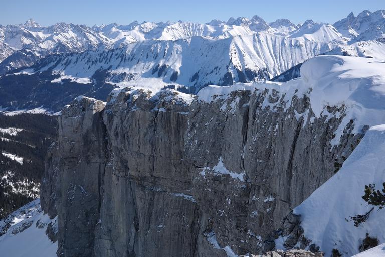 Keywords: rock wall abyss rock steep dangerous door corner mountains allgäu ski tour ski tour winter sports winter skiing snow alpine ski touring skitouren goers outdoor tour go touring skis