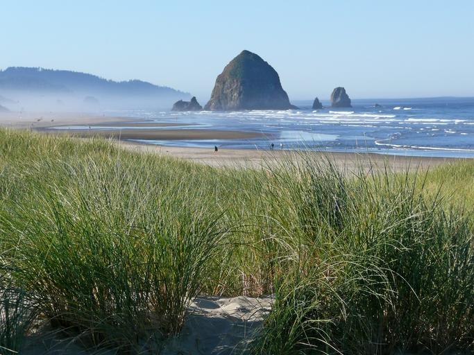 Keywords: coast beach early morning fog rocks grass sand landscape nature sand dunes water pacific shoreline