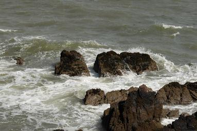Keywords: rocks sea surf storm shore water spray foam stormy wet waves coast
