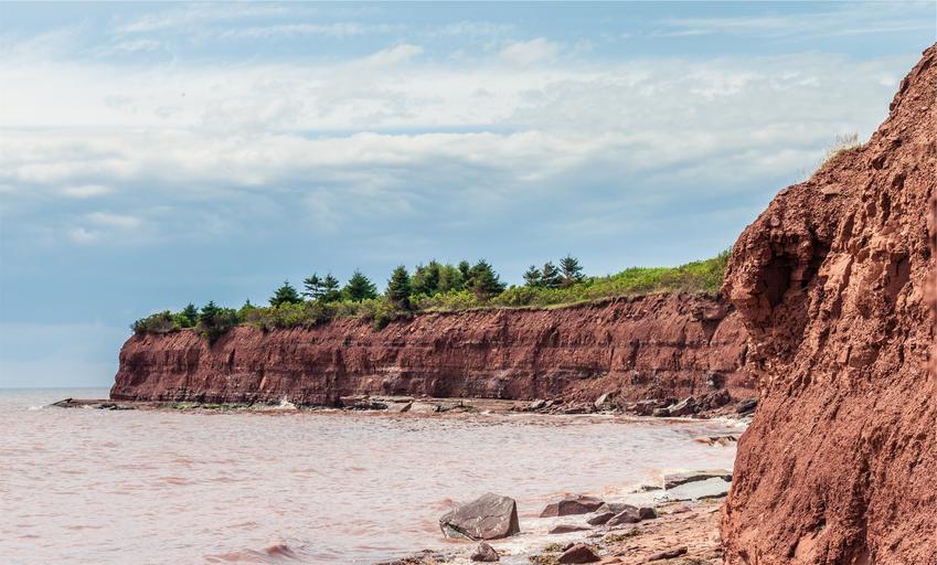 Keywords: rocks shore water wavers cliffs sky clouds dirt