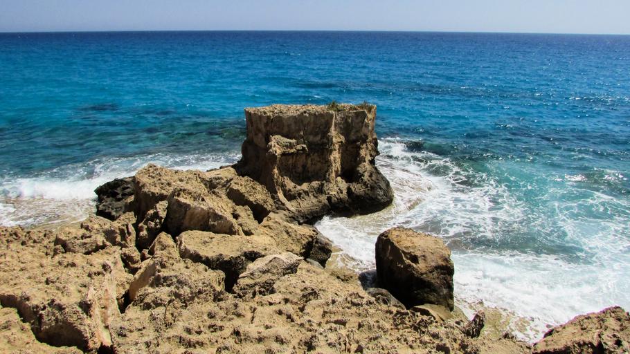 Keywords: rocky coast rock wave smashing foam spray energy water splash sea blue cyprus ayia napa