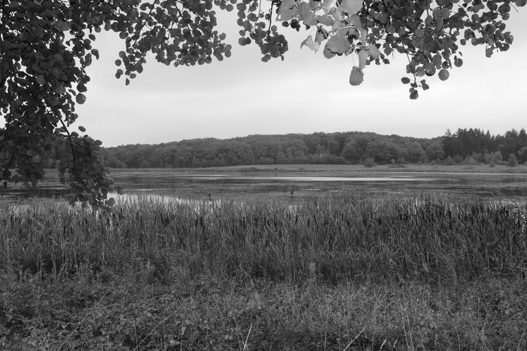 Keywords: rodder maar maar brohltal vulkaneifel autumn germany waters forest nature mood black white sky landscape