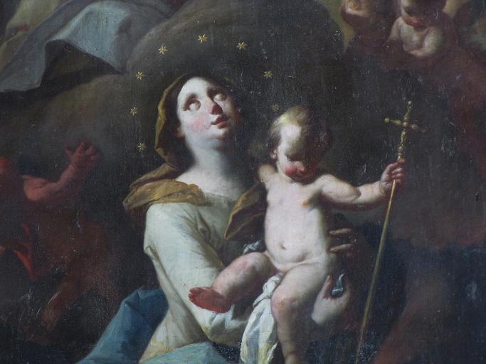 Keywords: Roeschwoog StBarthélemy 27.JPG Alsace Bas-Rhin Roeschwoog Eglise Saint-Barthélemy Tableau de l'autel secondaire de la Vierge XVIIIe own 2012 Ralph Hammann cc-by-sa-3 0 Artwork / Œuvre d'art / Kunstwerk oil canvas Eglise Saint-Barthélemy Roeschwoog IM67007328 object history Autels et retables du 2e ou du 3e quart du 18e siècle provenant selon la tradition du couvent de Koenigsbruck à Leutenheim ; ils semblent effectivement un peu grands pour leur emplacement Les tableaux pourraient être de la main d'un des peintres de la famille des Daniche la Vierge et saint Sébastien sont très semblables aux tableaux de l'église de Geispolsheim dus à Monique Daniche seule la composition du saint Sébastien est inversée other versions Ralph Hammann PD-old accession number Autels secondaires Église Saint-Barthélemy de Roeschwoog Photographs of Rœschwoog by Ralph Hammann Taken with Canon PowerShot SX20 IS Objets monuments historiques in Bas-Rhin church paintings Baroque church paintings in Alsace 18th-century church paintings in Alsace Paintings of Madonna and Child in France 18th-century paintings of Madonna and Child Details of 18th-century paintings |