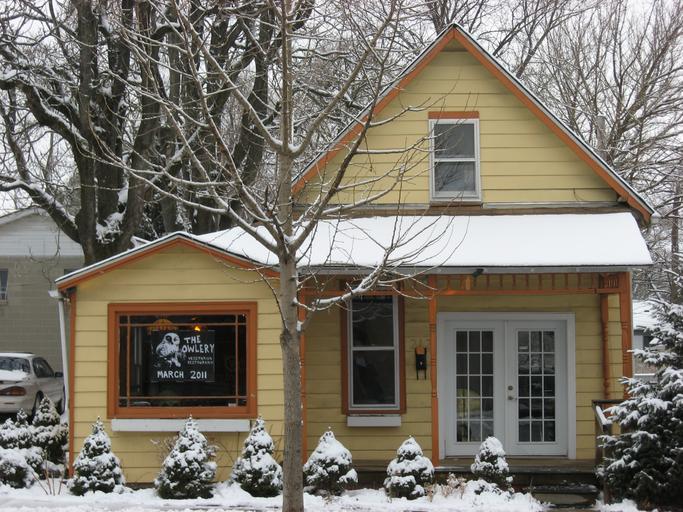 Keywords: Rogers Street South 212, The Owlery, Bloomington West Side HD.jpg 39 9 54 2 N 86 32 20 W Front of the house now The Owlery a restaurant located at 212 S Rogers Street in w Bloomington Indiana Bloomington Indiana United States Built in 1915 it is a part of the Bloomington West Side Historic District a historic district United States historic district that is listed on the National Register of Historic Places own 2011-02-05 User Nyttend Nyttend Built in Indiana in 1915 Houses built in the United States in 1915 1910s houses in Indiana Bloomington West Side Historic District Contributing properties in Bloomington Indiana Former houses in Bloomington Indiana Restaurants in Bloomington Indiana Rogers Street Bloomington Indiana Vernacular architecture of Bloomington Indiana Wooden houses in Bloomington Indiana Building-centered pictures by User Nyttend Taken with Canon PowerShot A540 |