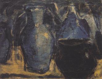 Keywords: Rohlfs - Stilleben mit Krügen, 1913.jpeg Stilleben mit Krügen oil canvas 59 0 x 76 0 cm Berlin Nationalgalerie der Staatlichen Museen WV-Nr 539 repro from artbook 1913 Creator Christian Rohlfs PD-old Other versions Christian Rohlfs