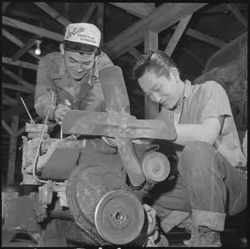 | Keywords: Rohwer Relocation Center, McGehee, Arkansas. In the motor pool repair section, George Baba and Tok . . . - NARA - 539383.jpg Scope and content The full caption for this photograph reads Rohwer Relocation Center McGehee Arkansas In the motor pool repair section George Baba and Tokiji Umeda begin overhauling a truck loader Motorized equipment at the center is maintained by qualified mechanics volunteered from center residents former west coast persons of Japanese ancestry General notes 539383 Local identifier 210-G-E861 Department of the Interior War Relocation Authority 02/16/1944 - 06/30/1946 NARA-Author Parker Tom Photographer 4682167 <br /> Still Picture Records Section Special Media Archives Services Division NWCS-S National Archives at College Park 8601 Adelphi Road College Park MD 20740-6001 1943-03-09 Record group Record Group 210 Records of the War Relocation Authority 1941 - 1989 Record group ARC 537 Central Photographic File of the War Relocation Authority compiled 1942 - 1945 Series ARC 536000 File unit File unit ARC Variant control numbers NAIL Control Number NWDNS-210-G-E861 Other versions <gallery> File Rohwer_Relocation_Center _McGehee _Arkansas _In_the_motor_pool_repair_section _George_Baba_and_Tok_ _ _ _-_NARA_-_539383 tif tif File Rohwer_Relocation_Center _McGehee _Arkansas _In_the_motor_pool_repair_section _George_Baba_and_Tok_ _ _ _-_NARA_-_539383 jpg jpg </gallery> NARA-cooperation PD-USGov Rohwer War Relocation Center |
