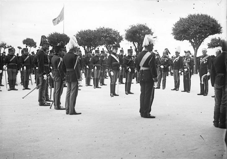 Keywords: Roi Manuel pendant une messe de campagne (Portugal).jpg Information_field GEH record <blockquote> Chusseau-Flaviens Ch French active 1890s-1910s TITLE ON OBJECT Portugal le roi pendant une messe de campagne ca 1900-1919 negative gelatin on glass 11 x 15 cm Gift of Kodak Pathe 75 0111 4621 NON-GEH NUMBER 028 H INSCRIPTION Portugal le roi pendant une messe de campagne NOTES Catalogued 6/87 JBB SUBJECT personage royalty / Manoel II King of Portugal </blockquote> Institution George Eastman House http //www geh org/ar/chus/portugal/m197501114621_ful html http //www geh org/ar/strip06/m197501114621 jpg between circa 1910-05-15 1910-06-26 š ðŸ›ˆ Charles Chusseau-Flaviens see below <gallery> Roi Manuel en chasseur Portugal jpg Missa de campanha 1/5 Roi Manuel en manÅ“vres Ch -Fl 111-4622 jpg Missa de campanha 2/5 Roi Manuel pendant une messe de campagne Portugal jpg Missa de campanha 3/5 Pretre benissant le roi Portugal jpg Missa de campanha 4/5 Roi Manuel agenouillant jpg Missa de campanha 4/5 </gallery> Information_field 1st uploaded as the 24 632 103<sup>th</sup> file in Wikimedia Commons Lic PD-old Black and white photographs of Portugal Photographs of Portugal by Charles Chusseau-Flaviens Unidentified locations in Portugal Photographs in the George Eastman House Collection Manuel II of Portugal Historical flags of Portugal 1830-1910 Trees in Portugal Military services of worship Military parades in Portugal 1910 in Portugal ImageNote 1 276 110 31 139 583 408 2 Dom Manuel II ImageNoteEnd 1 ImageNote 2 132 6 38 79 583 408 2 Bandeira nacional de Portugal 1830-1910 ImageNoteEnd 2
