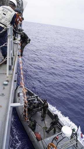 Keywords: ROKS VBSS team boards USS Chosin during RIMPAC 2014 140719-N-WT787-001.jpg en The Visit Board Search and Seizure team VBSS from the Republic of Korea Ship ROKS Wang Geon DDH-978 boards Ticonderoga class guided-missile cruiser USS Chosin CG-65 as part of Rim of the Pacific RIMPAC Exercise 2014 Twenty-two nations 49 ships and six submarines more than 200 aircraft and 25 000 personnel are participating in RIMPAC from June 26 to Aug 1 in and around the Hawaiian Islands and Southern California The world's largest international maritime exercise RIMPAC provides a unique training opportunity that helps participants foster and sustain the cooperative relationships that are critical to ensuring the safety of sea lanes and security on the world's oceans RIMPAC 2014 is the 24th exercise in the series that began in 1971 U S Navy photo by Fire Controlman 2nd Class Andrew Albin/Released 2014-07-19 Petty Officer 3rd Class Andrew Albin https //www dvidshub net/image/1460004 140719-N-WT787-001 2014-07-23 14 01 USS CHOSIN USPACOM AT SEA PD-USGov-Military-Navy USS Chosin CG-65 RIMPAC 2014 Images from DoD uploaded by Fæ |