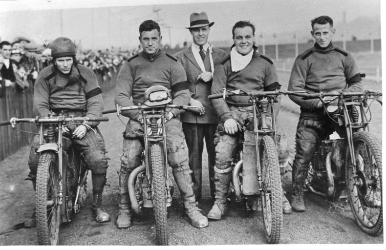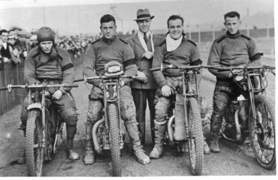 Keywords: Roland & maurice Stobbart.jpg en Roland Stobbart centre Maurice Stobbart second right my own collection Author circa 1930 's not required PD-old Category Roland Stobbart Maurice Stobbart Black and white photographs of motorcycle racing in the 1930s |