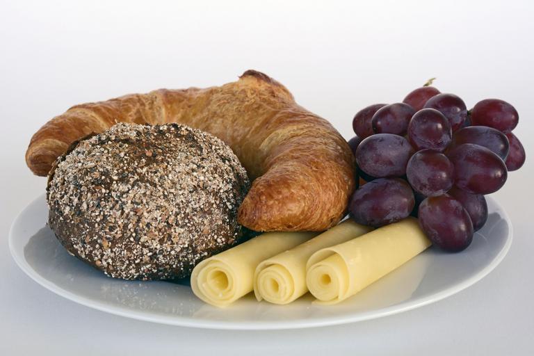 Keywords: roll summit croissant cheese grapes plate have breakfast sunday brunch good morning enjoy benefit from still life break eat food nutrition delicious sunday brunch